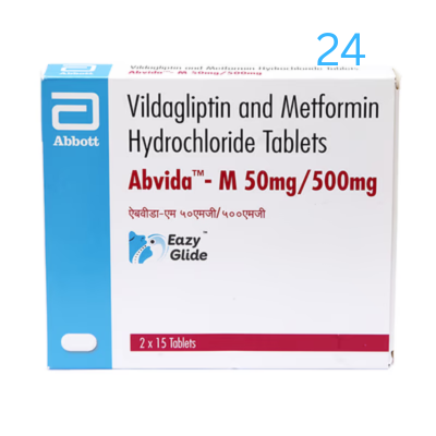 Abvida-M 50mg/500mg Eazy Glide Tablet is a combination of two medicines that control high blood sugar levels in people with type 2 diabetes mellitus. This helps prevent serious complications of diabetes, such as kidney damage and blindness, and may also reduce your chances of having a heart attack or stroke.
