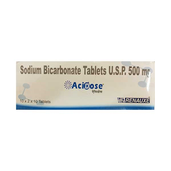ACIDOSE 500 TABLET contains Sodium Bicarbonate, which belongs to the group of medicines called Antacids. It is used in the management of metabolic acidosis. Metabolic acidosis can be defined as a condition in which body fluids and tissues produce too much acid in the body. It can also be used to manage heartburn (a burning sensation in the chest) and indigestion.