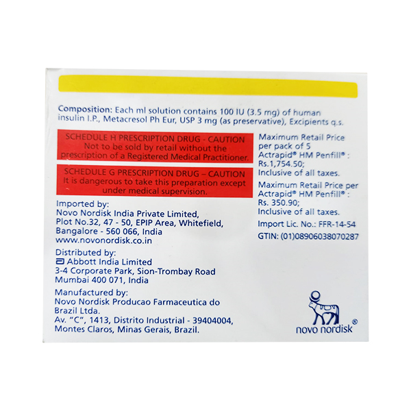 ACTRAPID HM PENFILL CARTRIDGE contains Human Insulin