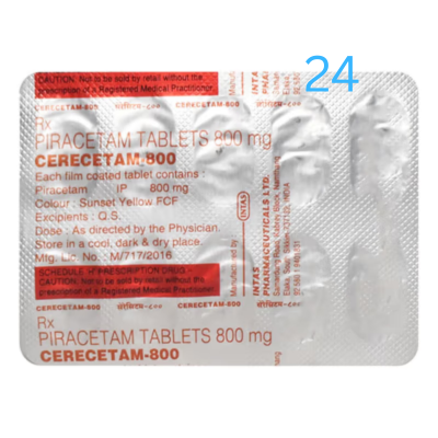 Cerecetam 800 Tablet should be taken by mouth with or without food. It is advisable to take this medicine at the same time each day to maintain a consistent level in the blood. Do not skip any doses and finish the full course of treatment even if you feel better. This medication mustn’t be stopped suddenly, as it may result in twitching or jerking movements, and even relapse of the disease may occur.