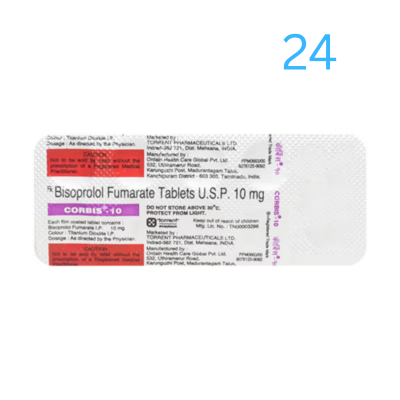 Corbis 10mg Tablet helps improve cardiac output and prevent heart failure progression. It helps regulate blood pressure, enhances blood flow, and supports overall cardiovascular health. This makes it essential to post-myocardial infarction (heart attack) care, ensuring long-term heart protection. It may also be used to relieve the symptoms caused by an overactive thyroid gland.