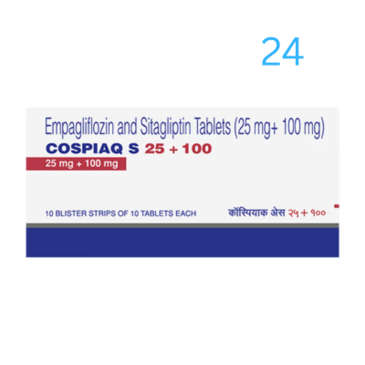 Cospiaq 25mg Tablet can be taken with or without food, in the dose and duration prescribed by your doctor. For best results, continue to follow your doctor’s advice on diet and exercise. Stay well-hydrated, especially during hot weather or physical activity, and attend regular check-ups to monitor your blood sugar, kidney function, and overall health.