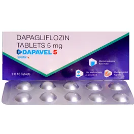 Dapavel 5mg Tablet is a medicine that helps to control high blood glucose (sugar) levels. It helps get rid of extra glucose from your body through urine. Lowering blood glucose levels is an essential part of managing diabetes. If you can control the level, you will reduce the risk of getting any of the serious complications of diabetes, such as kidney damage, eye damage, nerve problems, and loss of limbs. Taking this medicine regularly along with a proper diet and exercise will help you live a normal, healthy life. You should keep using it for as long as it is prescribed because it is protecting your future health.