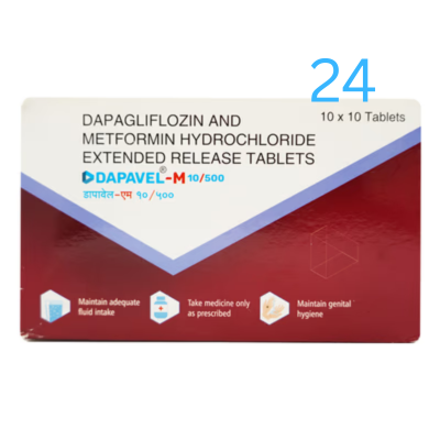 Dapavel M 10/500 Tablet ER is a combination of two medicines used to treat type 2 diabetes mellitus. It helps control the high blood sugar levels seen in diabetes. This reduces the chances of serious complications of diabetes and also helps prevent heart disease.