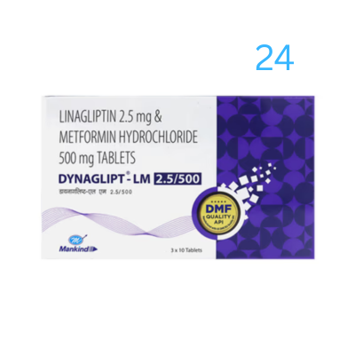Dynaglipt LM 500mg/2.5mg Tablet has two active substances in it i.e. metformin and linagliptin. Metformin belongs to a class of medicines called biguanides. Linagliptin belongs to a group called DPP-4 inhibitors. They work together in different ways to lower your blood glucose levels.