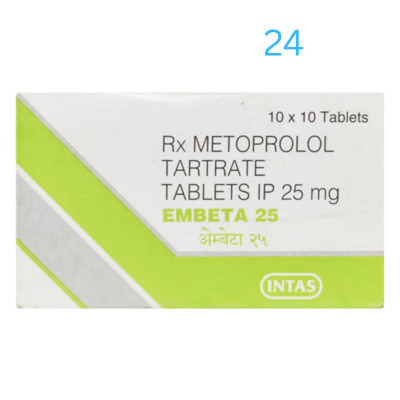 Embeta 25 Tablet is also used to relieve the symptoms caused by an overactive thyroid gland. It may be prescribed alone or together with other medications. The dose and frequency depend on what you are taking it for and the severity of your condition. It may be taken on an empty stomach or with a meal, but take it regularly at the same time each day to get the most benefit. It may take several weeks before you get the full benefit of this medicine, and you may need to take it for the rest of your life. However, it is important to continue taking it even if you feel well. Most people with high blood pressure do not feel ill, and if you stop taking it, your condition may worsen.
