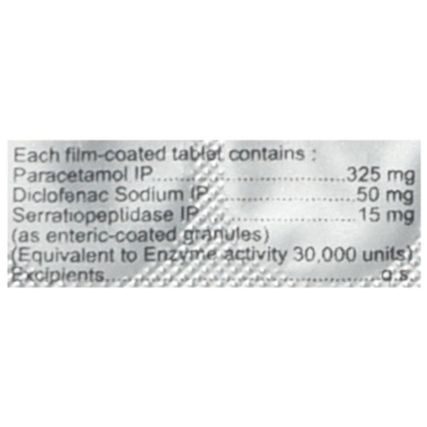 ENZOFLAM TABLET is a combination of Diclofenac, Paracetamol and Serratiopeptidase which belongs to the group of medicines called Nonsteroidal Anti-inflammatory Drugs (NSAID), Â Analgesics and Anti-pyrectics. It is used to relieve symptoms such as fever, pain and inflammation associated with musculoskeletal and joint disorders.