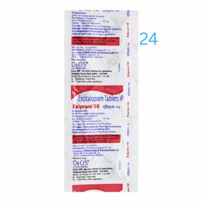 Esipram 10 Tablet helps recover from depression by improving mood and relieving anxiety and tension. It can be taken with or without food. The dose and how often you need it will be decided by your doctor based on the amount needed to control your symptoms. Your doctor may start you on a lower dose and increase it gradually. Do not change the dose or stop taking it without talking to your doctor, even if you feel well. Doing so may make your condition worse, or you may suffer from unpleasant withdrawal symptoms such as anxiety, restlessness, palpitations, dizziness, and sleep disturbances.