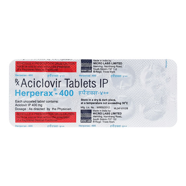 Take HERPERAX 400MG TABLET as advised by your physician. Swallow the medicine by mouth with a glass of water. Do not crush or chew the medicine. Your doctor will decide the correct dose and duration for you depending on your age, body weight and disease condition.