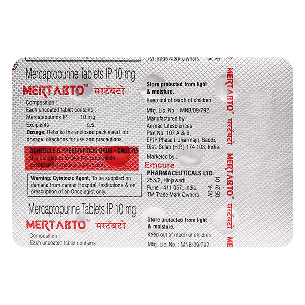 MERTABTO TABLET contains Mercaptopurine which belongs to the group of medicines called Cytotoxics. MERTABTO TABLET is used in adults and children to manage leukaemia, which is a type of blood cancer that occurs due to rapid growth of abnormal blood cells.