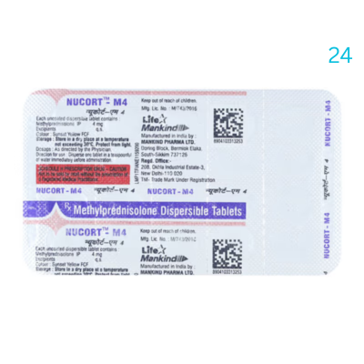 Nucort-M4 Tablet DT is a medicine used to treat a wide variety of medical conditions such as severe allergic conditions, asthma, rheumatic disorder, skin and eye disorders, and systemic lupus erythematosus. It provides relief by preventing the release of substances that cause inflammation.