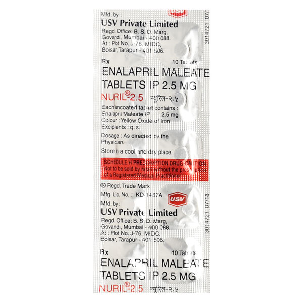 Nuril 2.5 Tablet is an angiotensin converting enzyme (ACE) inhibitor. It works by reducing stress on the heart and relaxing blood vessel so that blood flows more smoothly and the heart can pump blood more efficiently.