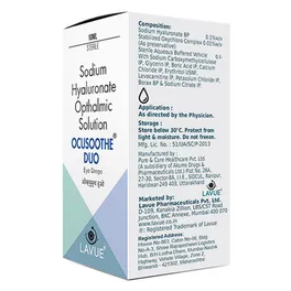 Ocusoothe Duo Eye Drop is usually instilled whenever needed. Take the dosage as advised by your doctor. Wait for at least 5-10 minutes before delivering any other medication in the same eye to avoid dilution. Do not use a bottle if the seal is broken before you open it, or if the solution changes color, or becomes cloudy.