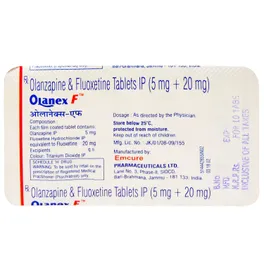 Olanex F Tablet is a prescription medicine used in the treatment of depression associated with bipolar disorder. It works by increasing the level of chemical messengers in the brain, which improves mood and physical symptoms of depression.