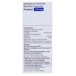 Pradaxa 110mg Capsule is an anticoagulant or blood thinner. It helps prevent and treat blood clots. It is used to reduce the risk of stroke and heart attack. It prevents and treats clot formation in the veins of your legs, lungs, brain, and heart.
