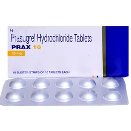 Prax 10 Tablet is used to treat people with a recent heart attack or severe heart-related chest pain (unstable angina), who have undergone stenting of the heart. It helps to prevent serious heart-related problems like having another heart attack, stroke, or formation of blood clots in stents.