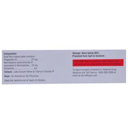 Pregadoc NT 75mg/10mg Tablet may be taken with or without food, preferably at bedtime. Take it at the same time each day as this helps to maintain a consistent level of medicine in the blood. Take this medicine in the dose and duration advised by your doctor. If you miss a dose of this medicine, take it as soon as you remember. Finish the complete course of treatment even if you feel better. Do not stop this medication suddenly without talking to the doctor.