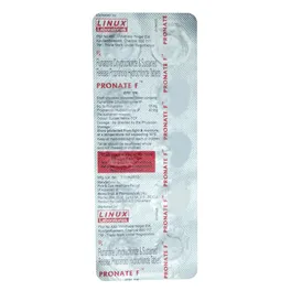 Pronate F Tablet can be taken with or without food. Take it regularly and at the same time each day for maximum benefits. The dose and how often you take it will depend on your condition and the severity of your symptoms. Your doctor will decide how much you need to improve your symptoms. Take it for as long as it is prescribed for you. Lifestyle modifications like avoiding stress, smoking, and processed food items may help this medicine work better.