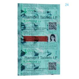 RAMIstar 2.5 Tablet is an angiotensin converting enzyme (ACE) inhibitor. It works by reducing stress on the heart and relaxing blood vessel so that blood flows more smoothly and the heart can pump blood more efficiently.