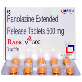Rancv 500 Tablet ER is used for the management of angina (heart-related chest pain). It helps prevent new attacks of angina but does not stop an acute attack once started. It relieves chest pain by making the heart work more efficiently.