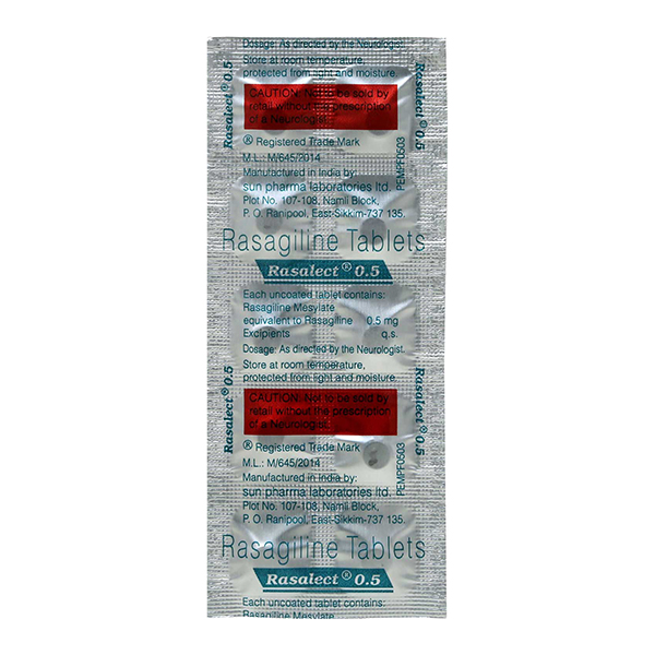 RASALECT 0.5MG works by increasing and maintaining the levels of certain natural substances such as dopamine, serotonin and norepinephrine in your brain, resulting in reduction of parkinson’s symptoms.