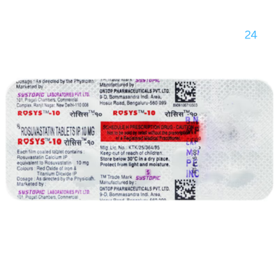 Rosys 10 Tablet can be taken with a meal or on an empty stomach. You can take it at any time of the day, but try to take it at the same time each day. Most people with high cholesterol do not feel ill. Do not stop taking the medicine suddenly without your doctor’s advice. Stopping your medicine may increase your cholesterol levels, making your condition worse and increasing your risk of heart disease and stroke.