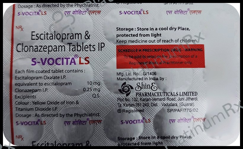 S VOCITA LS TABLETcontains a combination of Clonazepam and Escitalopram which belongs to the group of medicines called Antidepressants. It is indicated for the management of comorbid depression and anxiety disorder.
