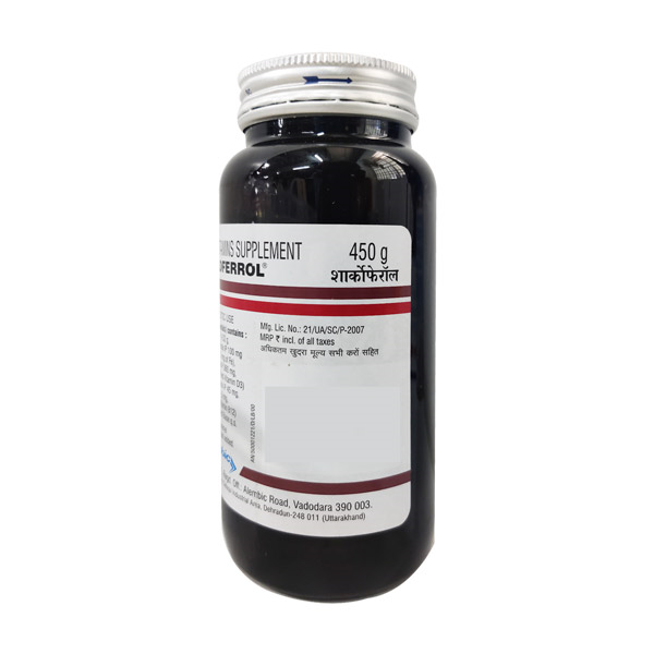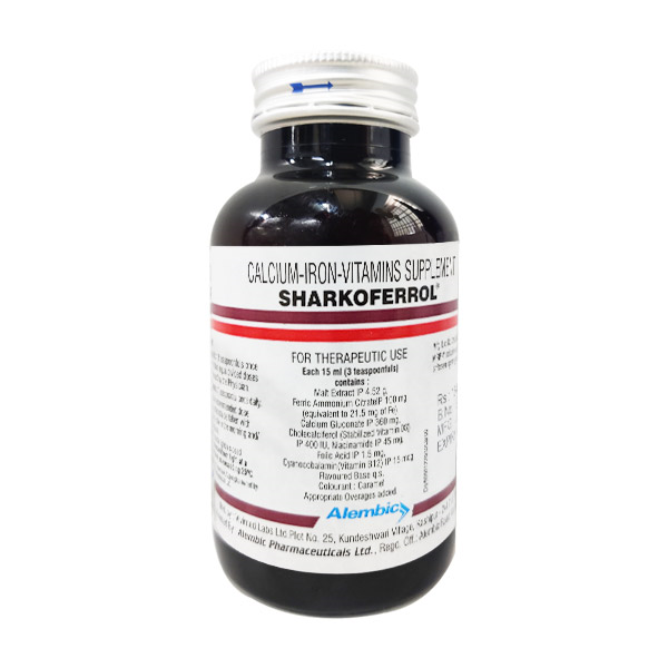 Sharkoferrol Syrup is a dietary supplement that contains calcium, iron, and vitamins as ingredients. It acts as a supplement to manage or prevent vitamin deficiency due to poor diet, certain illnesses, or during pregnancy. Vitamins are important building blocks of the body and help keep you in good health.