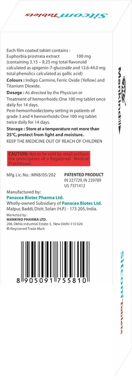 Sitcom Tablet has anti-hemorrhoidal properties, i.e., stops bleeding by shrinkage of blood vessels. It also acts as an antioxidant, an anti-inflammatory as well as an analgesic. This promotes healing and relieves any pain or inflammation associated with hemorrhoids (piles).