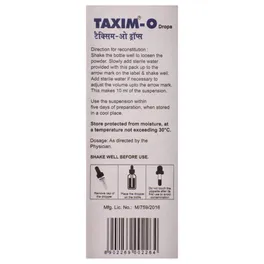 Taxim-O Drops may be given with or without food. Give it regularly and give it at a fixed time each day for best results. In case your child develops an upset stomach, prefer giving it with meals. The dose and the duration of the treatment will depend on the type and severity of the infection. Follow the prescribed schedule and instructions given by your child’s doctor.