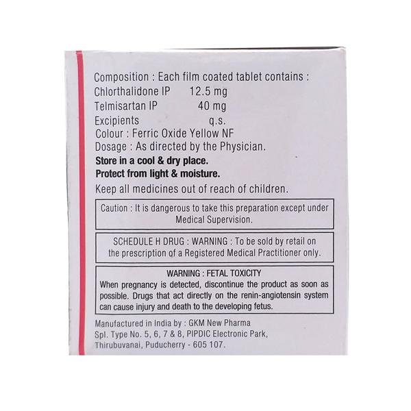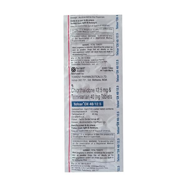 Telsar CH 40mg/12.5mg Tablet contains two medicines, both of which help to control high blood pressure. Lowering blood pressure helps to reduce your risk of having a heart attack or a stroke in the future.