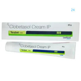 Terabet Cream comprises Clobetasol Propionate, an active corticosteroid with anti-inflammatory properties on the skin. It reduces swelling, redness, and itching by inhibiting the production of certain chemical messengers in the body that cause inflammation. Thus, Terabet Cream aids in treating skin conditions such as psoriasis, eczema, lichen planus, and discoid lupus erythematosus.