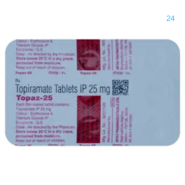 Topaz 25 Tablet may be taken with or without food, preferably at the same time, each day. If you have missed a dose, take it as soon as you remember it and finish the full course of treatment even if you feel better. Stopping the medication suddenly without talking to your doctor may cause an increased frequency of seizures. Your doctor may advise regular monitoring of serum bicarbonate levels while you are taking this medicine.