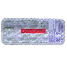 Trazine-H Tablet is a combination of two medicines: Trifluoperazine and Trihexyphenidyl. Trifluoperazine is a typical antipsychotic. It works by blocking the action of a chemical messenger (dopamine) in the brain that affects thoughts and mood. However, it may cause side effects such as involuntary movements (shaking of hands, muscle spasms). Trihexyphenidyl is added to treat and prevent these side effects.