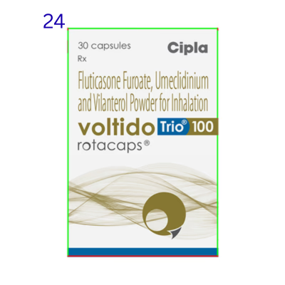 Voltido Trio 100 Rotacap is a combination of fluticasone furoate, umeclidinium, and vilanterol. Fluticasone Furoate works by blocking the production of certain chemicals in the body that cause inflammation (redness and swelling) and allergies. Umeclidinium and vilanterol work by relaxing air passages in the lungs, making breathing easier.
